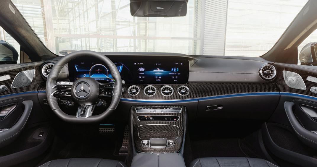 Two 10.25-inch screens sideby-side provide a digital gauge readout and infotainment controls. The latest Mercedes-Benz User eXperience (MBUX) software includes integrated artificial intelligence meaning it can predict user behaviour. For example, if when driving home at a certain time of a specific radio station is selected, MBUX may automatically suggest a shortcut right on the display. And as always, the available Burmester surround sound stereo, part of the $4,800 Premium Package, sounds crystal clear.