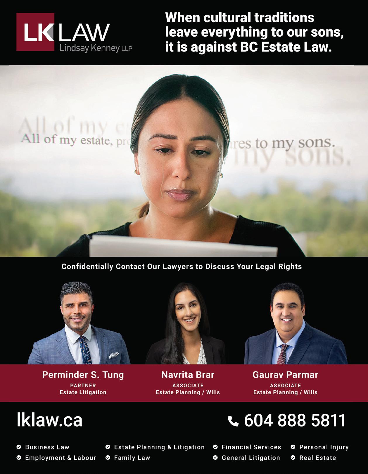 #101- 7945 132ND ST SURREY, BC www.columbiacollision.com WE WORK ON ALL VEHICLES DOMESTIC, IMPORTED, EUROPEAN & LUXURY. QUALITY WORK LIFETIME WARRANTY INSURANCE CLAIMS DRIVE-THRU SERVICE FAMILY OWNED & OPERATED CALL 24/7 CALL US TODAY FOR A FREE ESTIMATE! JOLLY DHALIWAL RICK DHALIWAL GURMAIL SENGHERA MIKE SANGHERA Lakhy (Lakhwinder Kaur) Sidhu Get a mortgage that works for you Mobile Mortgage Specialist Tel: 604.726.9291 Lakhy.Sidhu@td.com We’ve got the right mortgage for you!