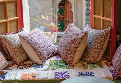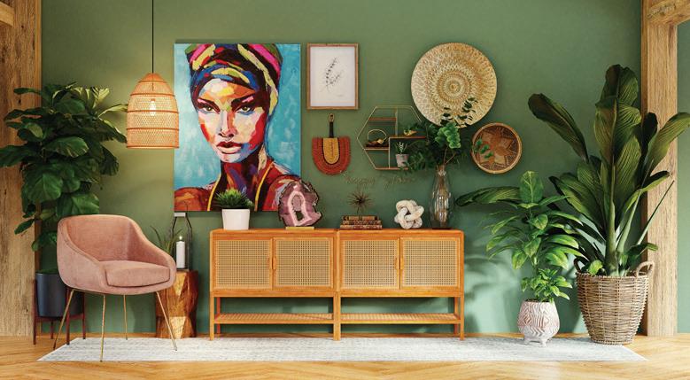 The trending décor style essentially blends materials belonging to different eras – old and new – to achieve something novel. The emphasis on combining simple straight-lined spaces with vibrant colours and patterns through textiles, antiques, and decorative pieces, remains at the root of this trend.