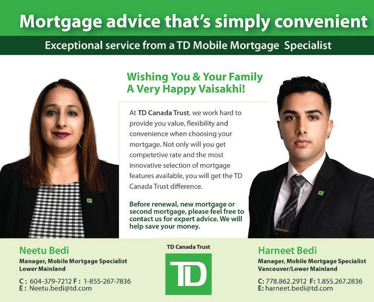 2023 VAISAKHI 11 604-419-8888 gulfandfraser.com Let’s talk. Happy Vaisakhi! Celebrate with us Saturday, Apr 15 Sunset Community Centre 6810 Main St, Vancouver Saturday, Apr 22 7925 128 St, Surrey *Terms and conditions apply. G&F Financial Group is now Gulf & Fraser, a trade name of Gulf and Fraser Fishermen’s Credit Union. Visit our booth and enter to win a trip to India* Power your possibleTM