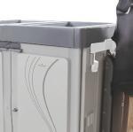 The K-Mop 46 has a 46 cm working width and a four-litre freshwater tank mounted on the handle. During operation, water flows from the freshwater tank to the wastewater tank, reducing top-section weight as cleaning progresses. Both tanks are removable for emptying and rinsing. The freshwater tank can be filled via an opening or hose, and detergent can be stored in a dedicated holder.