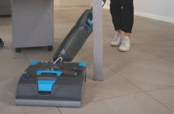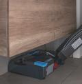 The machine is designed to provide consistent cleaning performance across a range of floor types. Floating brushes, increased brush pressure and a reinforced drive system support effective cleaning on smooth floors as well as textured surfaces such as kitchen tiles with drainage joints. An additional power function, referred to as Rocket Mode, is available when increased force is required to address more persistent soiling.