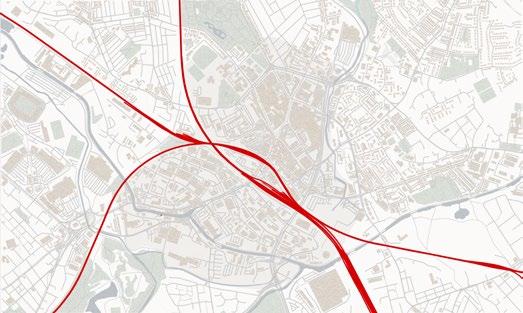 Throughout the 20th century, Wigan road infrastructure was expanded and enhanced to support the increasing traffic and development needs. The A577 highway, which passes through Wigan, connects the main road network of the Greater Manchester region. However, the stretch around the Pier and Wall-gate Street towards the Market Street experiences heavy traffic, making it less accessible for pedestrians to reach landmarks in the area. The current cycle tracks and footpaths are narrow and do not provide an inviting pedestrian experience towards the pier. Moreover, the highway’s sides are merely paved and lack any particular purpose, while the footpaths lack vibrancy.