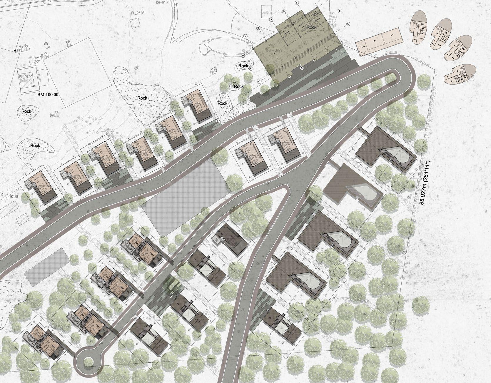 The overarching goal of this project is to create a recreational area for the community, which will also include the owner’s villa. The proposed master plan suggests that the buildings will seamlessly integrate into the natural landscape, appearing as if they were carefully crafted from the available space. In addition to the landscape, there will be pedestrianfriendly areas designed to encourage community gatherings and enhance the overall enjoyment of the space.