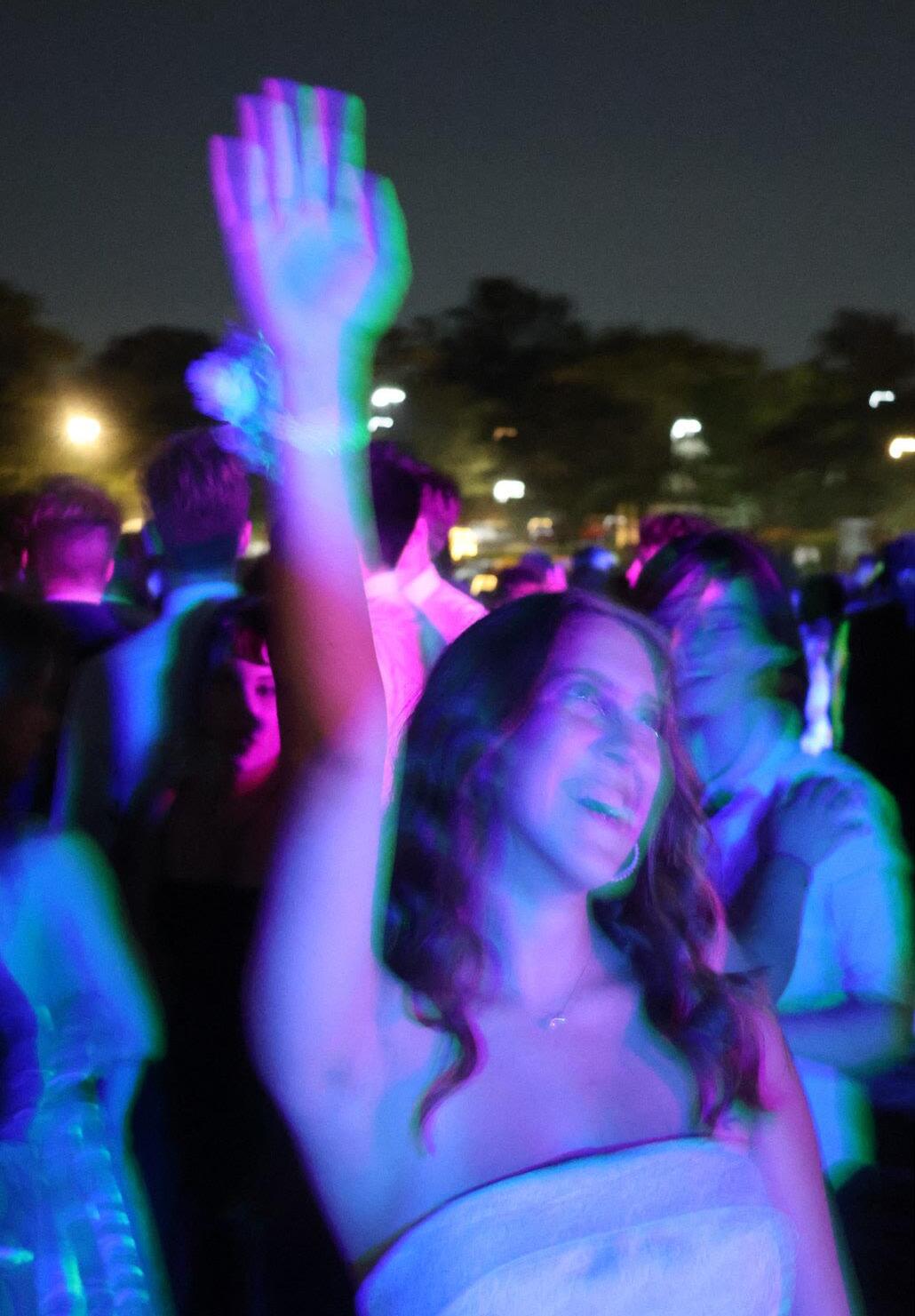 Junior Margot Stuckey throws her arm up and dances to the music.
