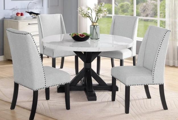 D. YOUR CHOICE 5 PC Rectangular Dining Set or 5 PC Round Table Dining Set | Rectagular Table 42” x 72” or Round Table 54” | Faux Marble Top with Charcoal Base finish $ 99999 Super Value | CTP* $ 240999