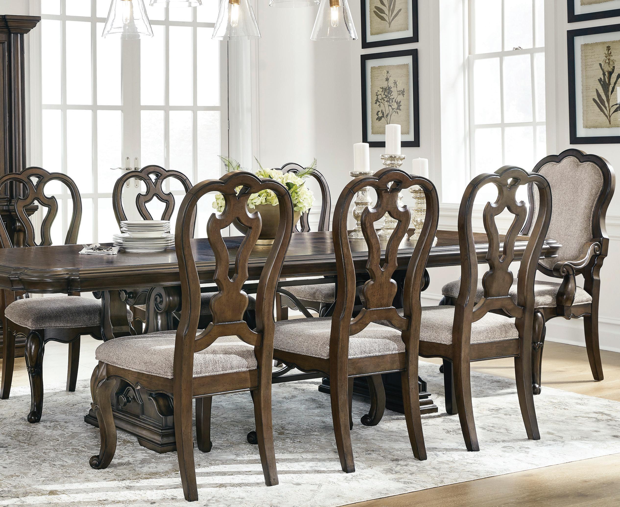 A. 5 PC Dining Set | Dark Brown finish | 72” Double Pedestal Table extends to 108” $ 179999 Super Value | CTP* $ 419999