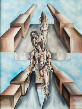 self through a surreal painting of dreamlike power, with frequent touches of metaphysics, visible in perspectives aimed toward an infinity beyond the canvas. It is an emotional vision, where imaginative disguises and underlying enigmas open possible passages that spark a deep dialogue with viewers, who may, while analyzing the works, find themselves drawn into a kind of self-reflection. Among her main cycles: the Bucolics, particularly captivating for their imagery and imagination, revealing the artist’s personality - sweet yet energetic and determined; then the figurative Black series, surprising for the vitreous quality of the figures; and her large conceptual works such as Kronos, which spotlight her inner and visionary depth. And not least, the female figures - decisive and dominant in every aesthetic and existential articulation”. Franco