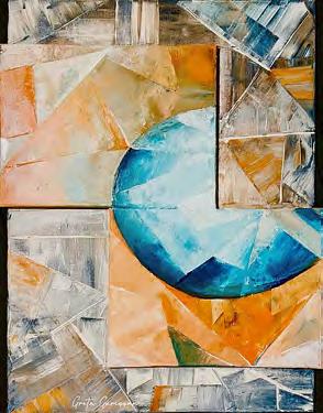 I observe a marked inclination toward abstract and post-abstract cues, with conceptual elements of rare depth that impart meaning within each piece, engaging both tactile and visual perception. The palette-knife reliefs are strikingly compelling, sometimes outlining geometries rooted in her Dna, or highly distilled landscapes - works that are always balanced, magnetic, energetic, and sensual. The artist moves between nostalgia and romanticism, offering the refined and shrewd sensibility that surrounds her creations. I would say her works are art therapy, for their purity, harmony, emotion, and sensuality”. Mario Salvo