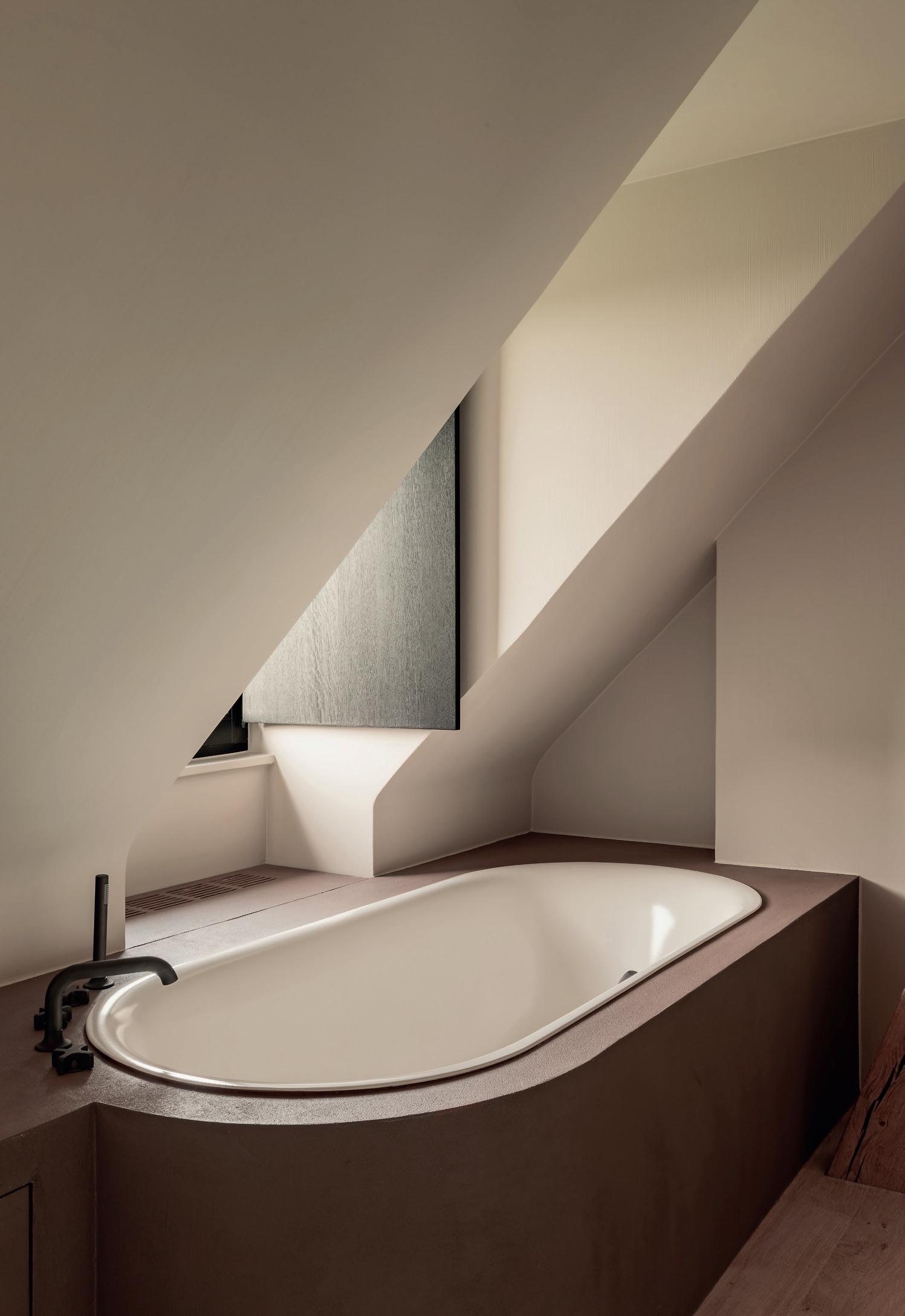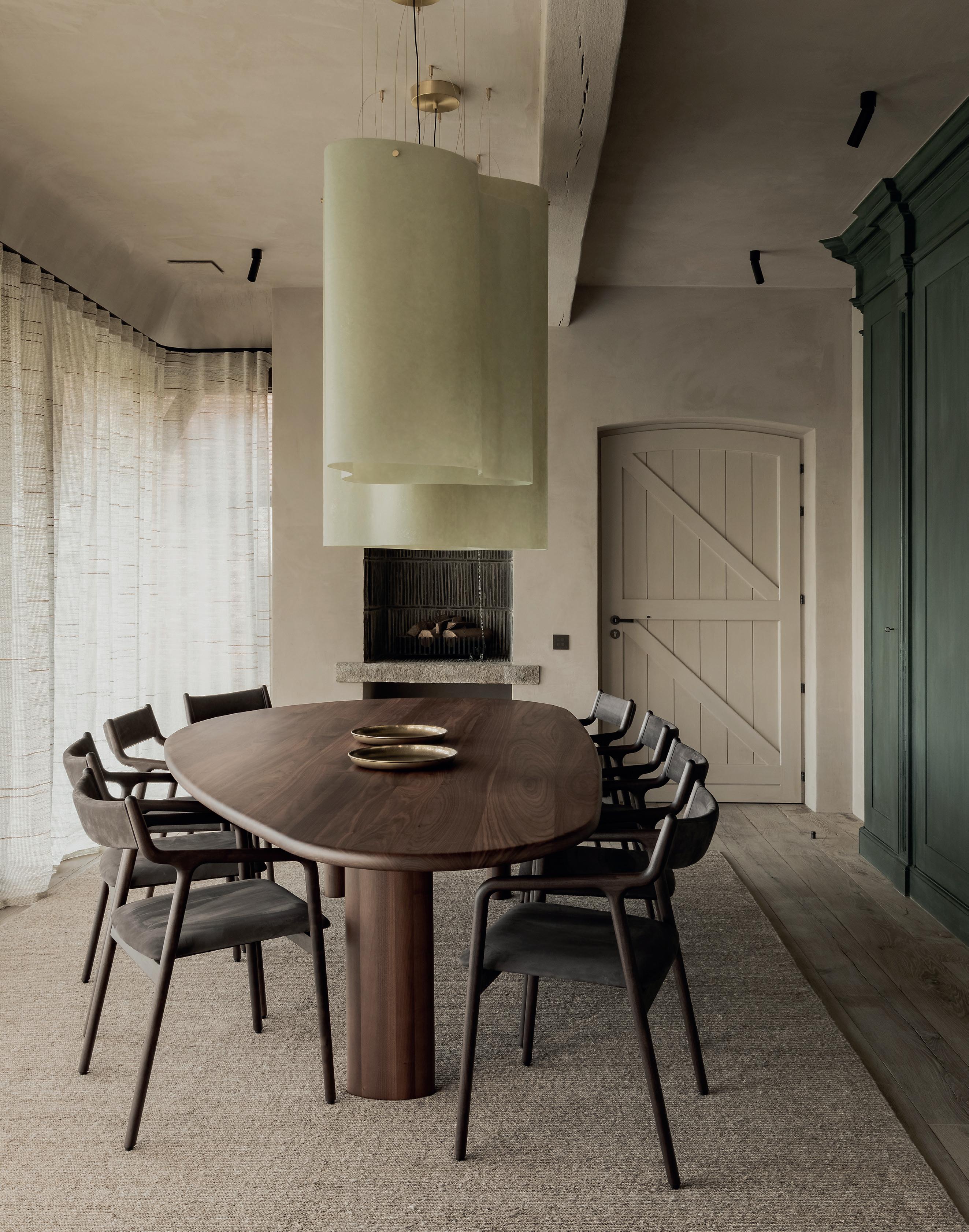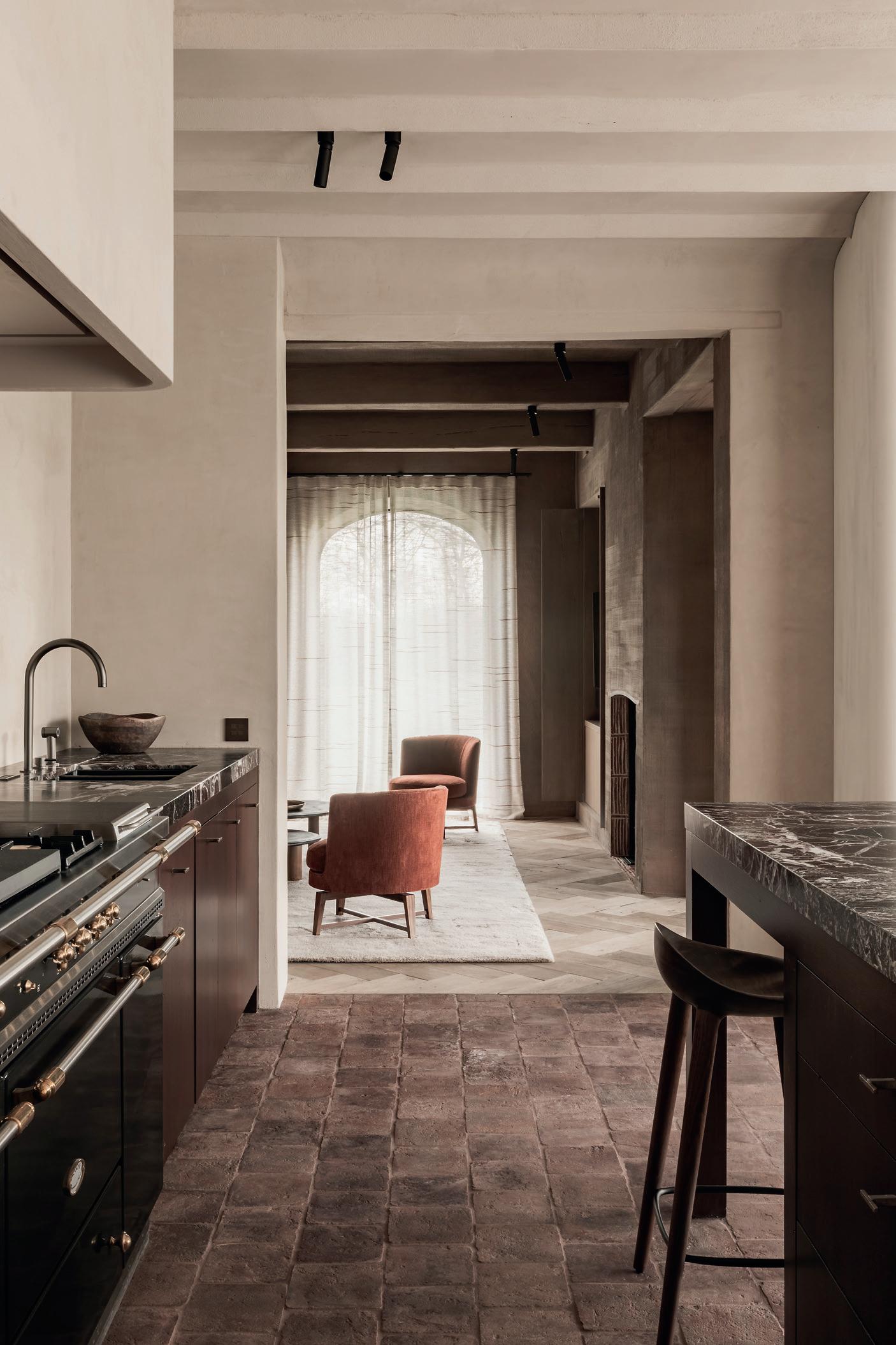 gekozen materialen weerspiegelen diezelfde filosofie: hout, steen en pleisterwerk die niet alleen in harmonie zijn met het huis zelf, maar ook met de natuur errond. Zo ontstaat een interieur dat voelt alsof het hier altijd al heeft bestaan. Alles is nieuw, maar niets voelt nieuw. Het huis lijkt een geschiedenis te hebben die perfect aansluit bij zijn huidige bewoners. De kracht van dit project schuilt in de bewuste keuze voor natuurlijke, ambachtelijke materialen. Niets is standaard of vluchtig: elk oppervlak, elk meubelstuk, elk detail werd geselecteerd om een verhaal te vertellen. Het gaat niet om tijdloze schoonheid die met de jaren alleen maar dieper en rijker wordt.