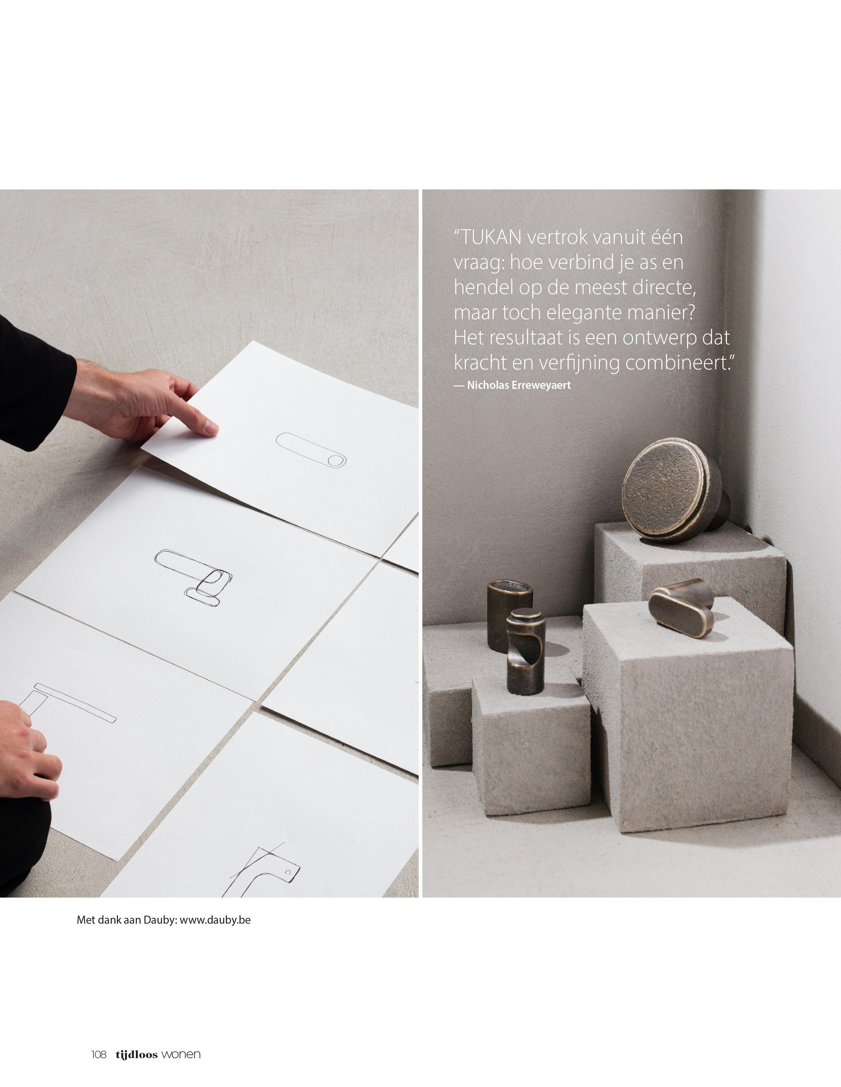 This reportage presents Belgian designer Nicholas Erreweyaert and his collaboration with Dauby. Built on a shared appreciation for craftsmanship, patina and restraint, the CAST and TUKAN collections translate Erreweyaert’s sober design language into tactile, timeless architectural hardware.