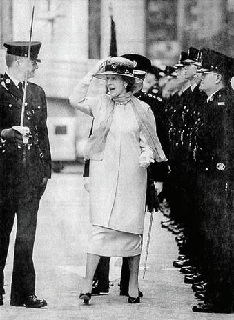 The late Lady Katherine Worsley, Duchess of Kent, confers with officers of the Yorkshire Volunteers