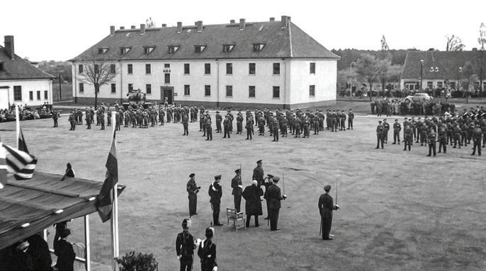 After the Second World War, Germany had been divided into four zones of occupation – controlled by Britain, France, USA and the USSR. The British Army of the Rhine (BAOR) formed the military element in the British zone. By this time Russia had begun to pose a threat to Western Europe, the blockade of Berlin being the most outrageous act. As a result, in April 1949 the North Atlantic Treaty was signed, joining 12 countries together in a defensive alliance. Thus the North Atlantic Treaty Organisation (NATO) was born, one element of which was the BAOR. In December 1951 the 6th Armoured Division joined BAOR with the 1st Battalion of the Dukes, stationed at Minden.