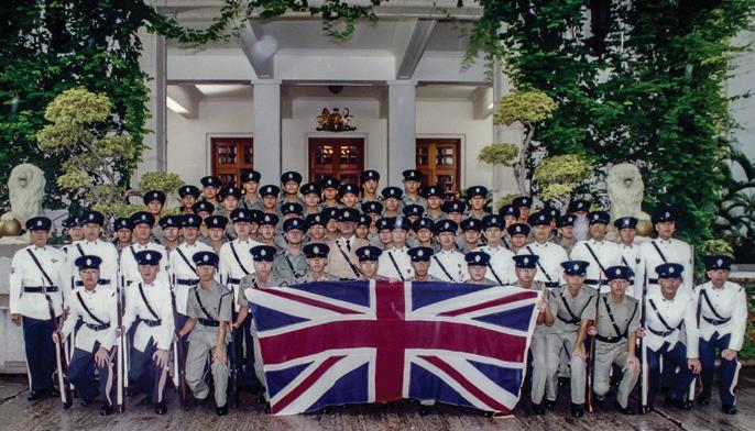 The Guard of Honour for the Government House ceremony pose proudly with the Union Jack. This would be the last time that the national flag would be displayed, as Communist China takes control of the British Colony. Clive Howard is centre of the first standing row, in white shirt