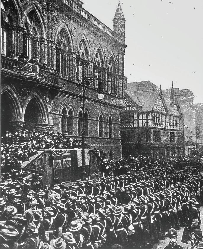 Next in line of duty we meet George Lee, a youthful horse dealer. After leaving Knutsford Grammar School, he joined the Yeomanry as a trooper in the Knutsford troop of the Cheshire Yeomanry. He much later sailed to South Africa as a 40-year-old sergeant with what was then the 22nd Company of the Imperial Cavalry Yeomanry. This was to fight in the so-called ‘Boer War’ (1899-1900). An aggressive and immensely strong man, he achieved later fame as a bare-fist pugilist, being so proficient as to be offered the position of Master of Ceremonies and Referee in the Boxing Ring at Blackpool Tower ballroom – this until the outbreak of the First World War in 1914.