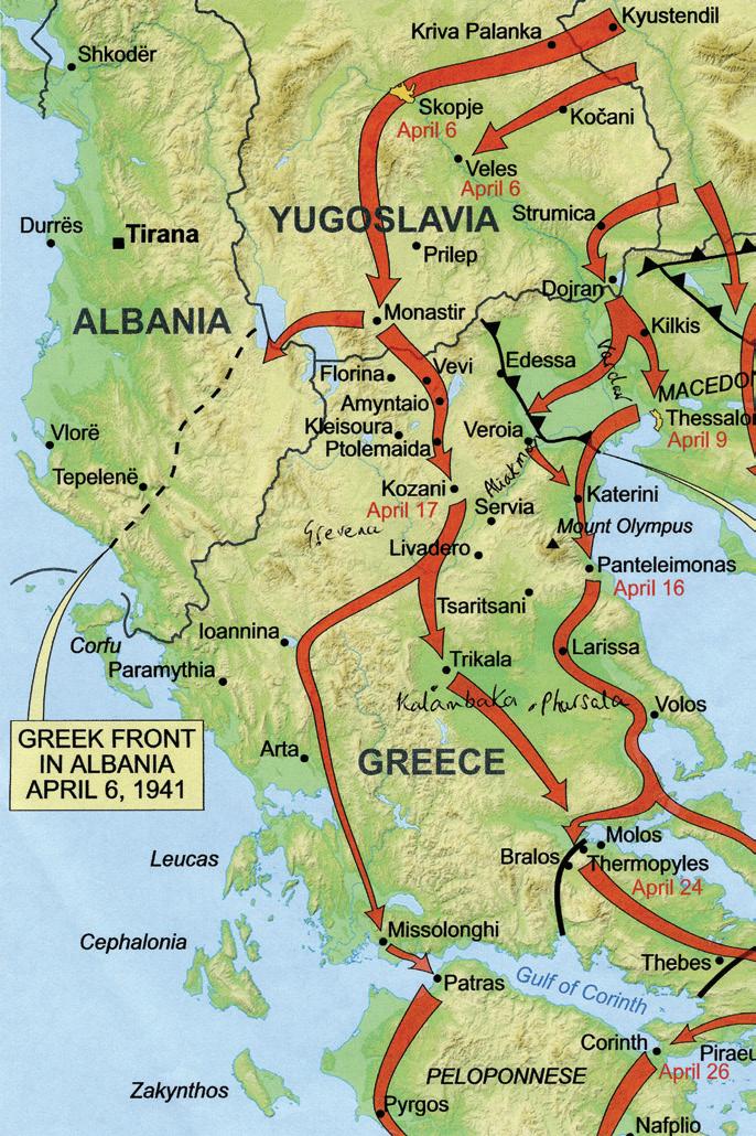 In 1941, as Prime Minister, in a gallant but ill-advised attempt to prevent Germany seizing Greece, he sent two divisions and the 1st Armoured Brigade, including his own 4th Queen’s Own Hussars, to Greece from Egypt. Greece’s topography renders it indefensible and disaster followed defeat and headlong retreat, which saw the British and Empire troops losing 903 men killed, 1250 wounded and 13,958 captured. Losing all theirs tanks, the 4th Hussars were totally destroyed. 100 men escaped, to provide the nucleus of the Regiment, which was re-booted and would fight again at El Alamein.