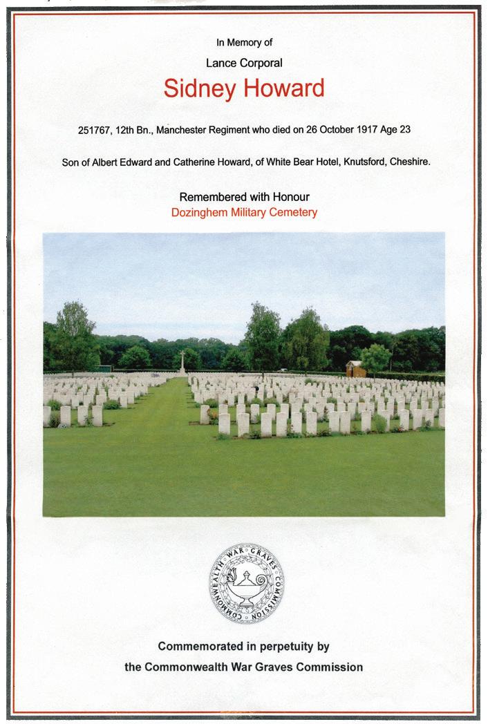 A boy whose love of adventure and desire to be a soldier cost him his young life and Sidney Howard, age 23, killed in action 26 October 1917