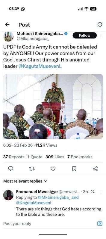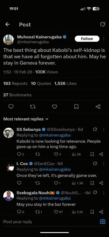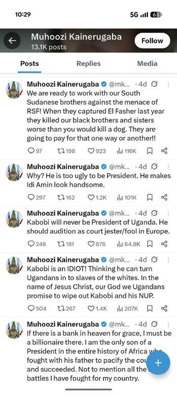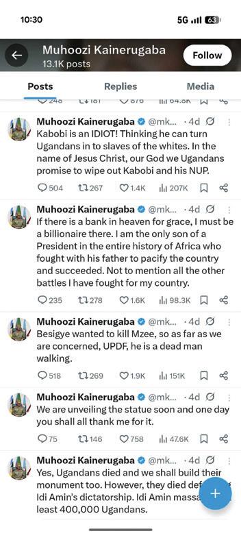 Besides that, Mr Muhoozi and his associates may not yet appreciate how damaging his post on X is to his reputation and to public trust; he currently treats tweeting as a bit of fun, but I expect a time will come when he will have to publicly disown the account and deny responsibility for those messages.
