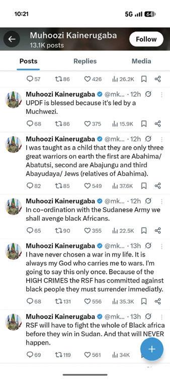 Gen Muhoozi in using the X account to Oppress others