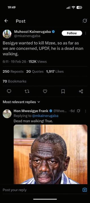 Mr Museveni, Mr Muhoozi, and many within the NRM establishment believe that Uganda is essentially the property of their family or party. From that viewpoint, no one is allowed to challenge either of them on matters of national leadership. This mindset helps explain why figures like Dr Kizza Besigye are currently imprisoned.