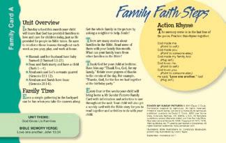 Every four or five weeks your child will bring home a My Sunday Pictures Family Card with information and activities to use throughout the unit. Your child will also get a weekly card with the Bible story for you to read together and activities to do with your child.
