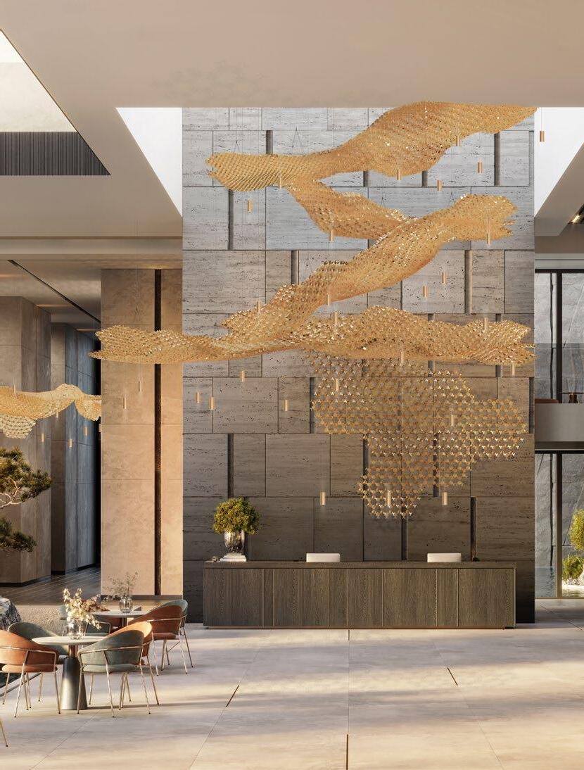 The suspension’s colors and size can be customized upon request, fitting for large scale installations.