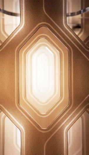 A close-up of printed and richly engraved Cristalflex® decorative elements.