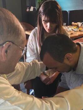 skab og har lært kraften i tilgivelse. På skærmen delte han billeder af de Kristne ledere, der havde støttet ham siden hans teenageår og opfostret ham i troen. Derefter gav han mikrofonen til mig for at tjene dette åndelige og fysiske behov hos en far. Sådan begyndte jeg: