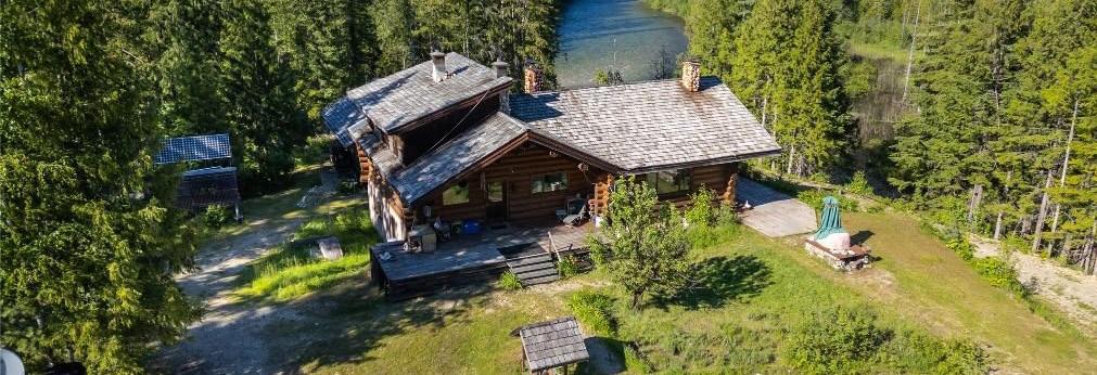 Now offering an extraordinary opportunity to own a secluded riverside retreat on 78 acres along the Seymour River at the northern tip of Shuswap Lake. This is a self-sustaining getaway, fully serviced with electricity, phone, internet, and satellite TV. A gravity-fed water system sourced from a nearby creek and a combination of solar power and a Pelton wheel ensure reliable, off-grid living, free from utility bills and full of peace of mind. A main log home, complemented by a 25‘ x 35‘ guest cabin, a cozy riverside cabin, greenhouse, and a variety of outbuildings—ideal for hosting large gatherings, group ownership, or creating a spa or wilderness resort.