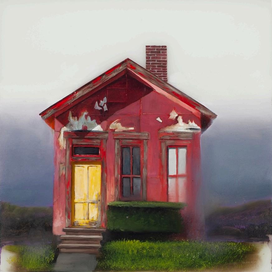 16)RedHouseYellowDooronWhite, 2025,oilonfrostedacrylic,12x12in