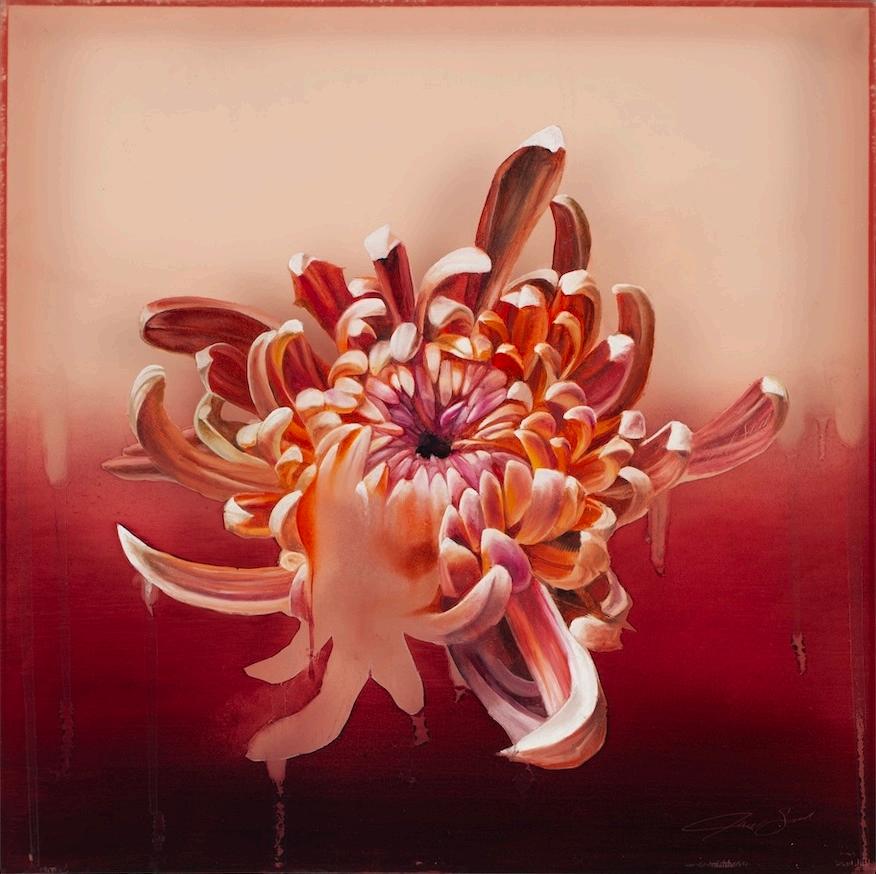 21)ChrysanthemumonCranberry,2025 oilonfrostedacrylic12x12in