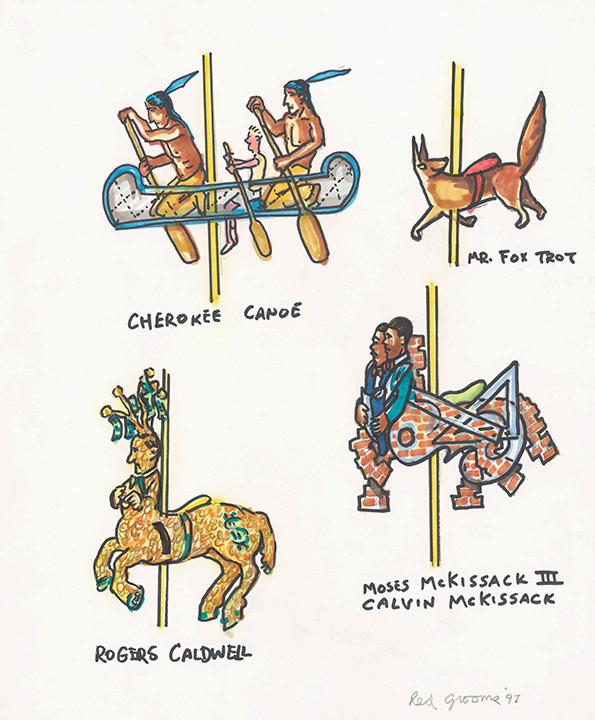 1) Red Grooms, Tennessee Fox Trot Carousel, 2025 ink on paper14 x 52 50 in