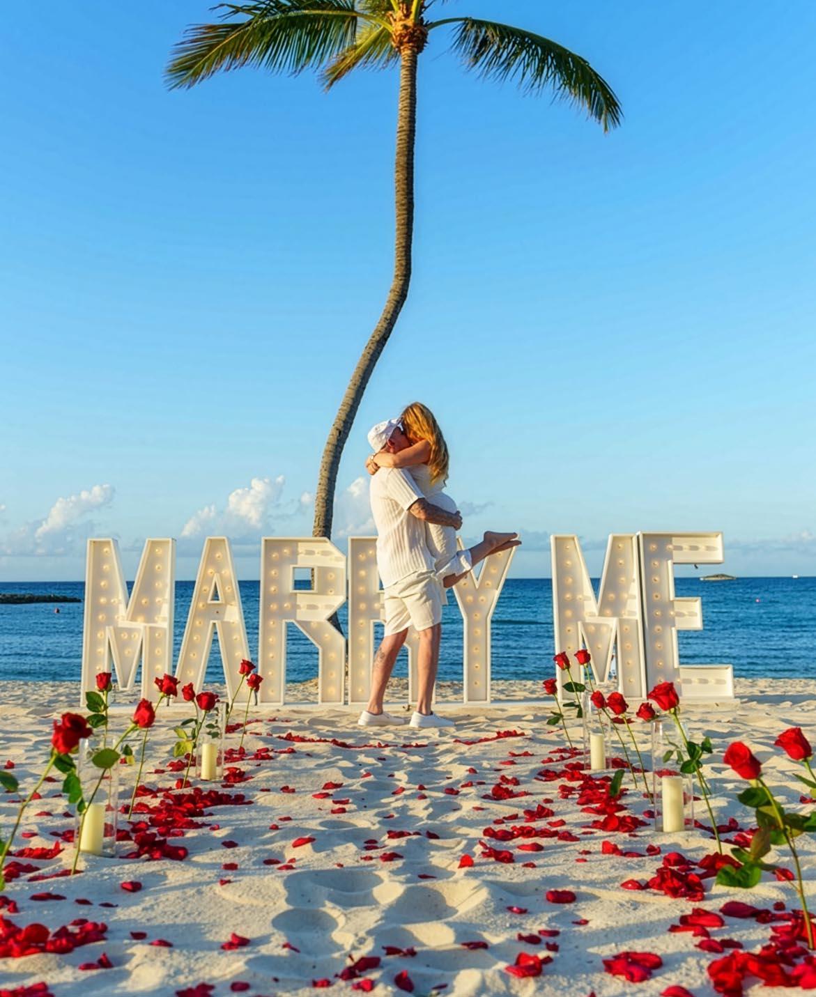We walked around to the back of the restaurant, and that’s when I saw it… a beautiful heart lit up with the words “Will You Marry Me?”