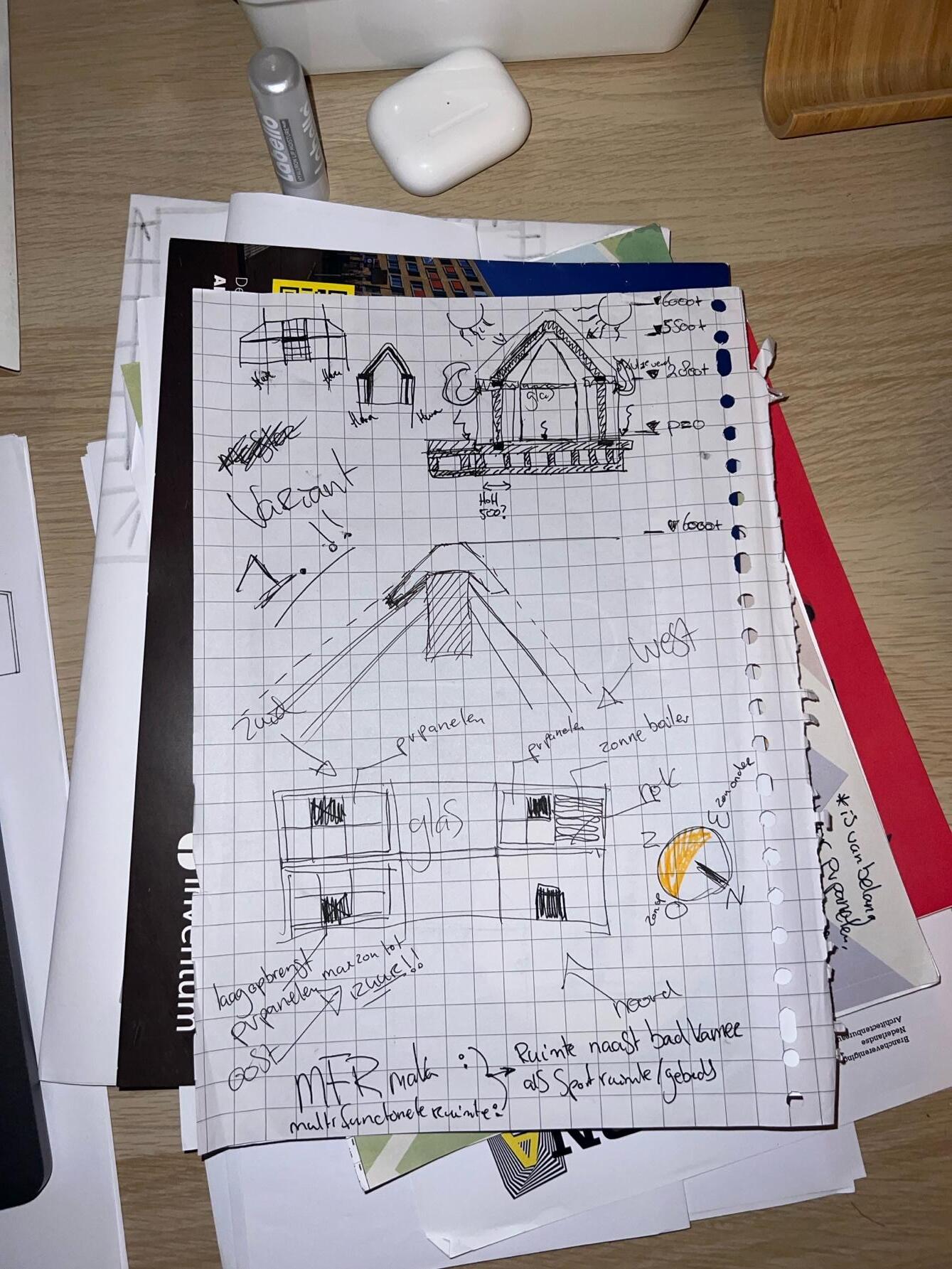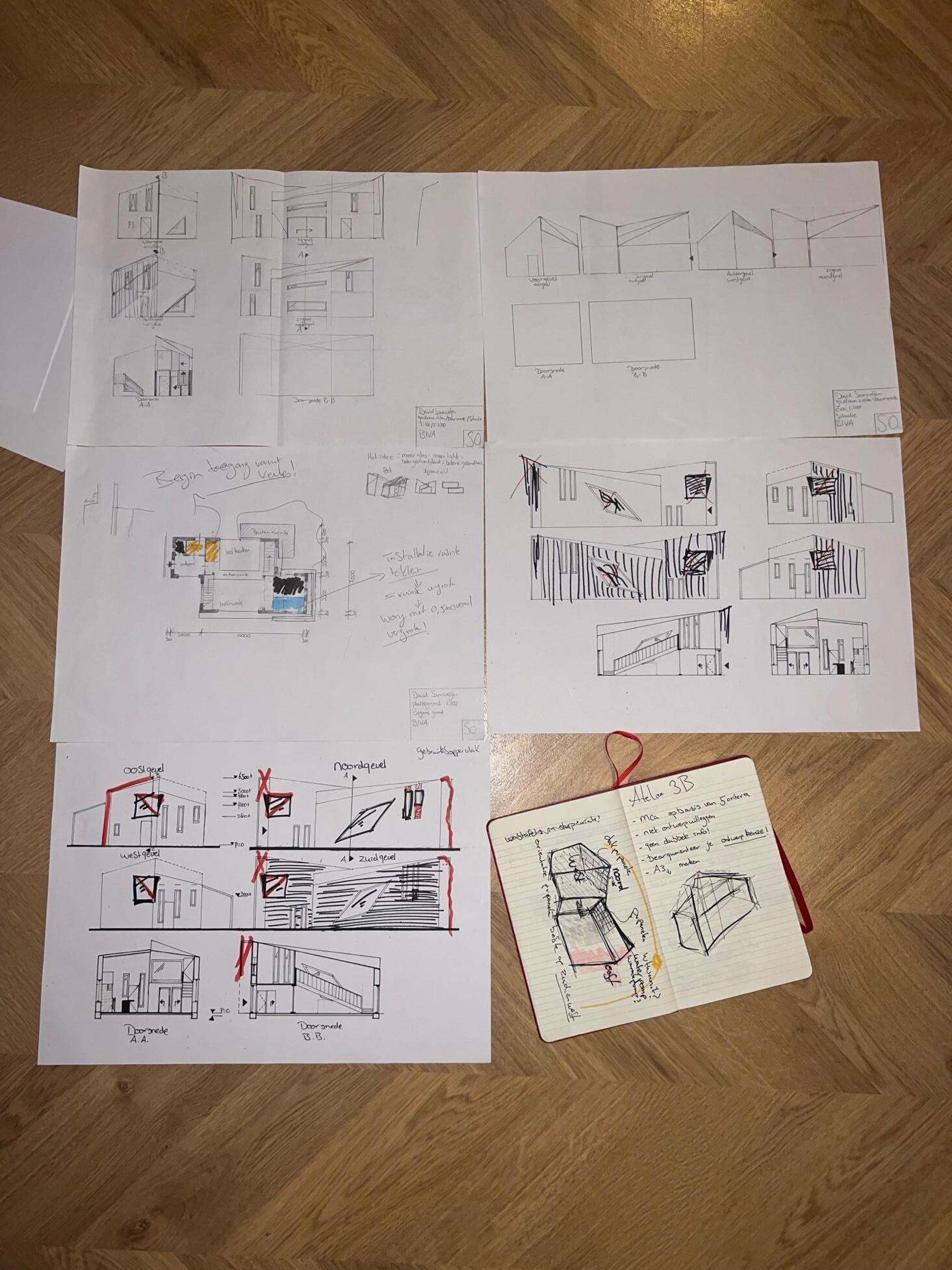 Al deze aanpassingen zijn allemaal in kleine zijstraatjes op papier ge waardoor ik aan het eind een stapel schetsen had waar ik mooi met een rode stift dingen kon wegstrepen.
