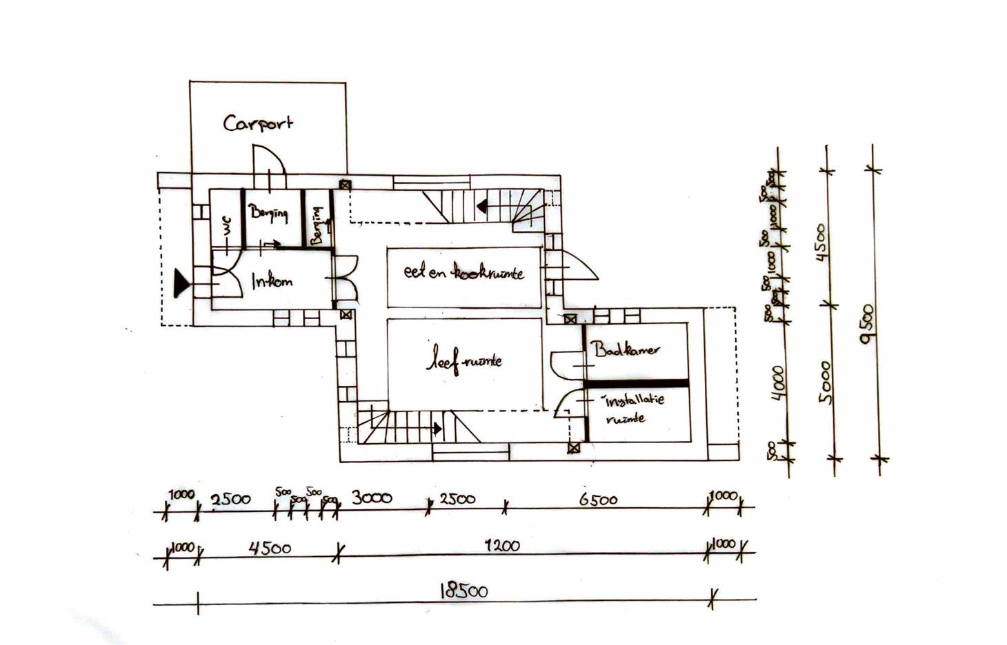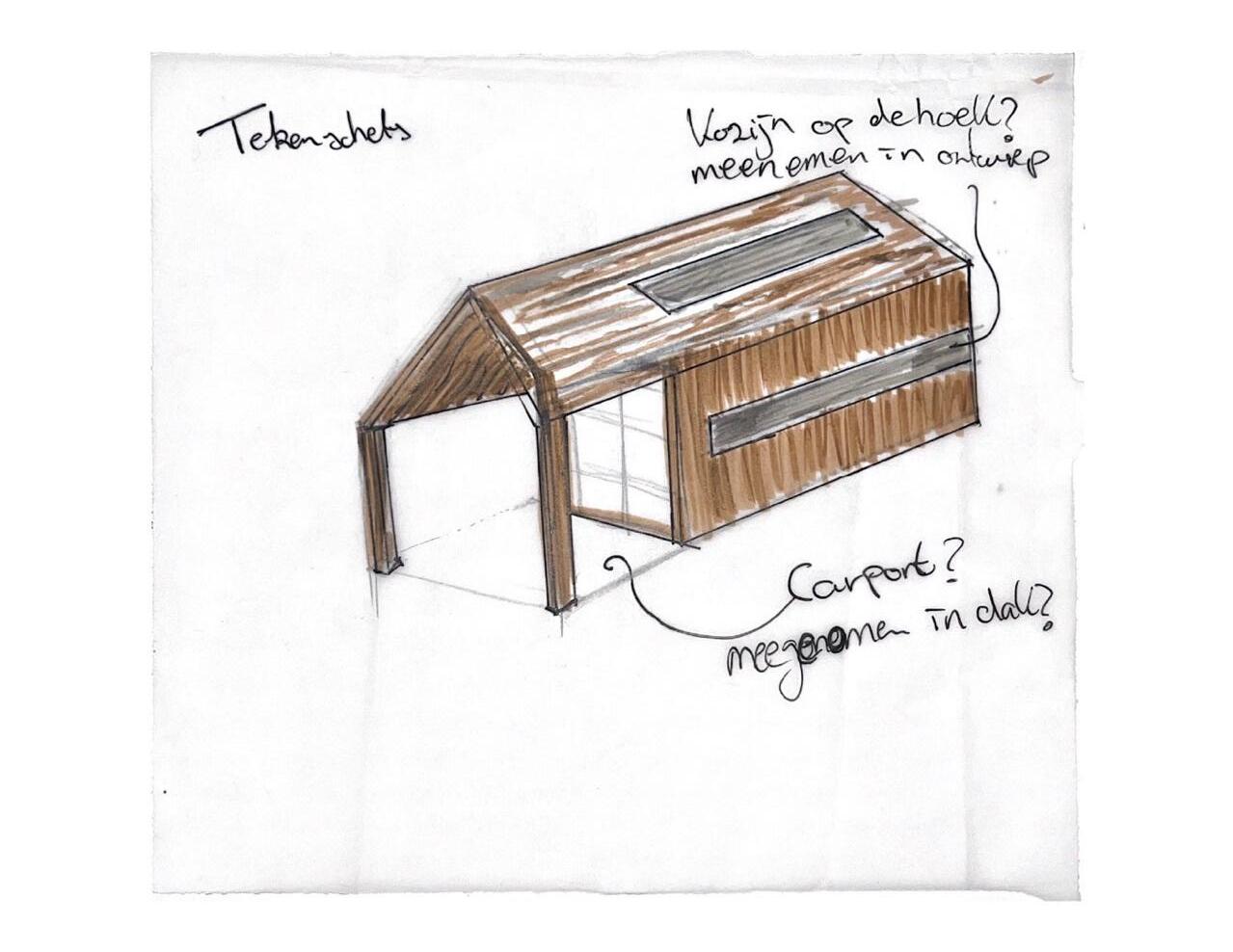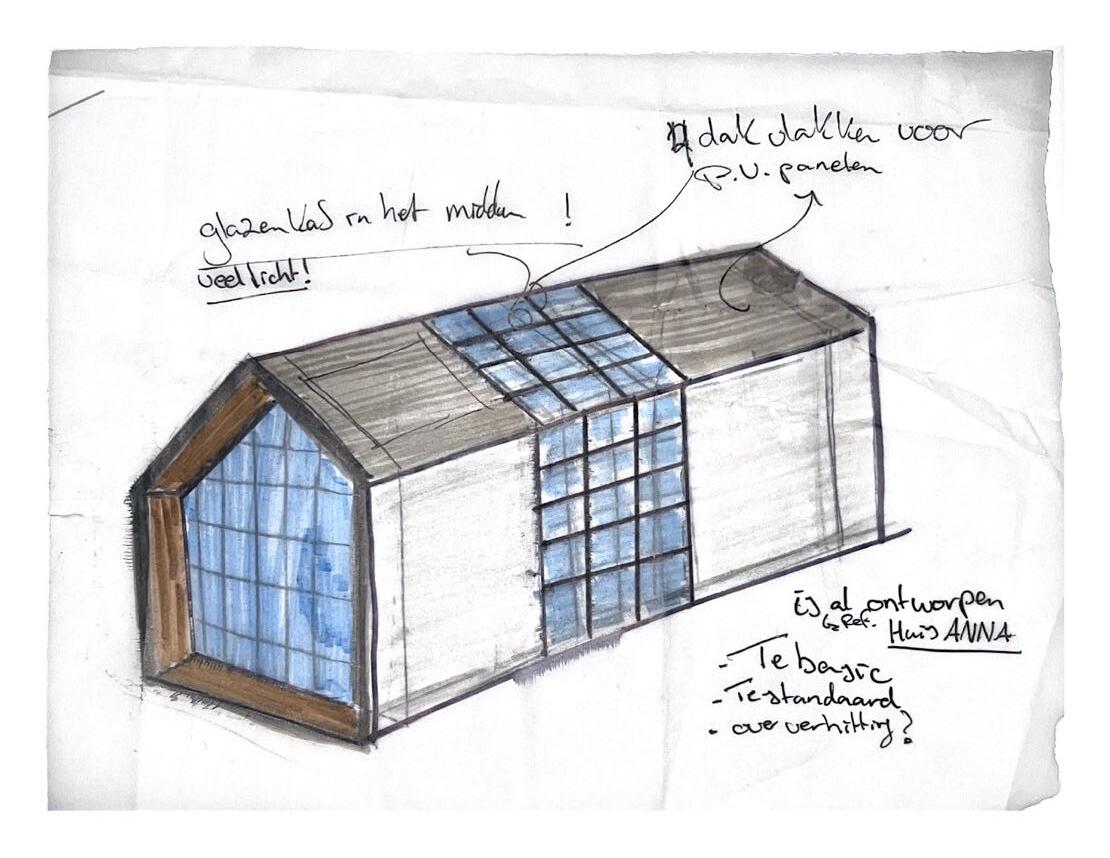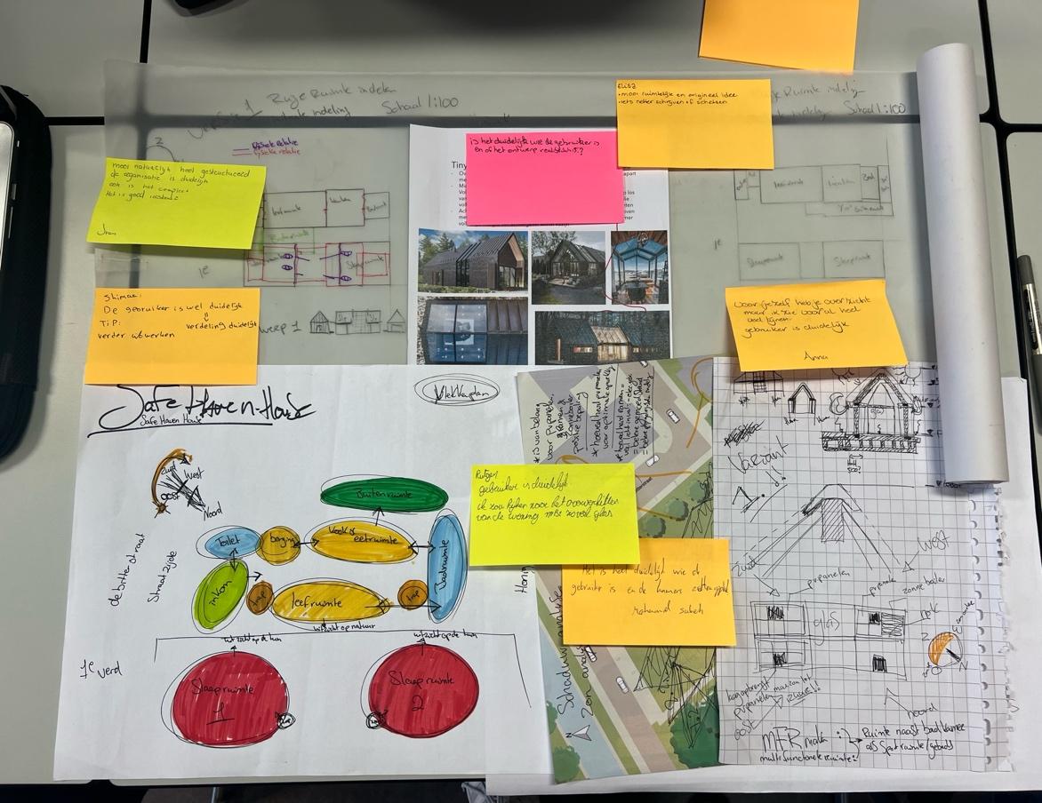 Tijdens het schetsen/ontwerpen was voor mij een belangrijke stap om in de schoenen van de gebruiker te staan en vanuit die point of view in samenwerking met het pve een huis te ontwerpen.