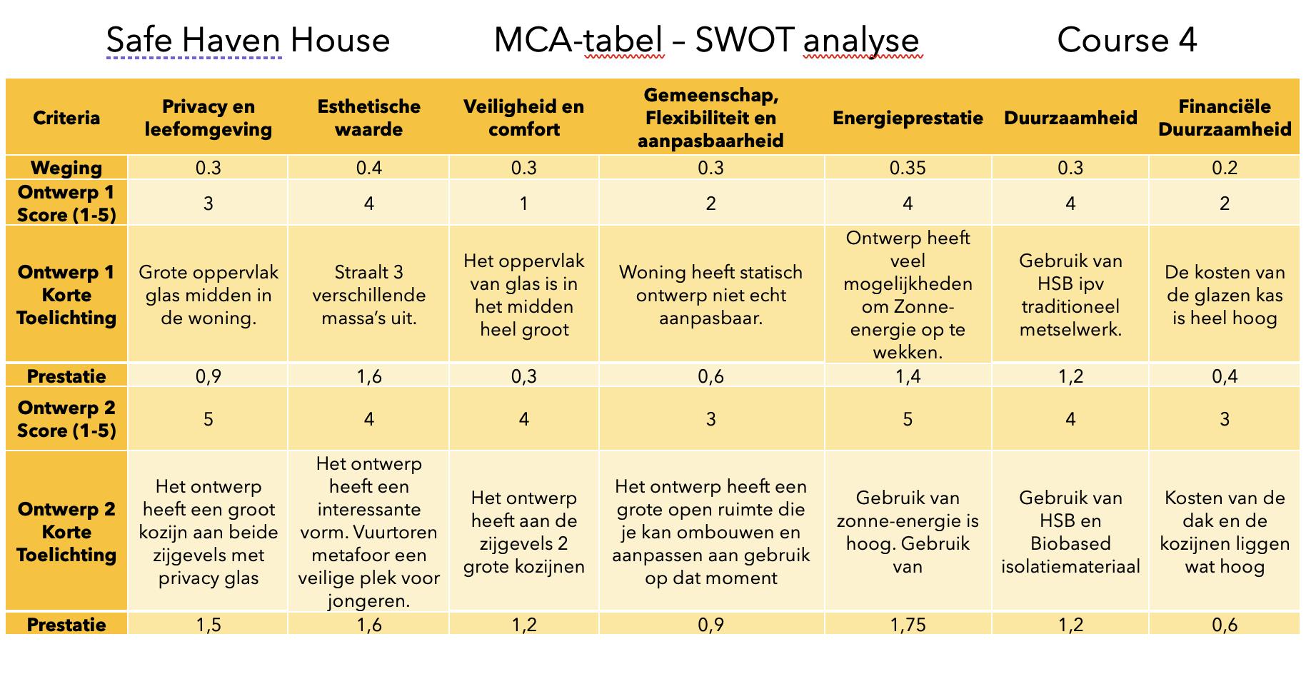 MCA-tabel toetsing op ontwerp En keuze met toelichting waarom.