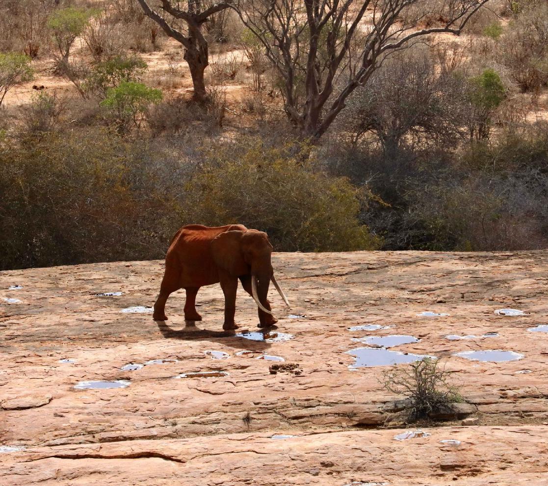 A second bull elephant was reported by Finch Hatton Lodge in Tsavo West, also with a severe limp. The following day, the bull was located by a xed-wing patrol before being evaluated from helicopter by the KWS/SWT Amboseli Vet Unit It appeared that the bull suffered from a broken leg With no possibility of treatment in the wild and with some con dence that it was an old injury the elephant had learned to live with, the decision was made not to intervene