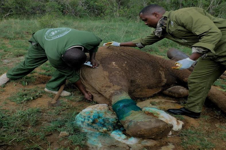 The Tsavo Conservation Area received good rainfall in the Southern Area and in some parts to the West. Natural water pans in these areas had enough water and animals also had enough forage throughout the reporting period The Unit attended to 24 cases over the three months, 10 of which were directly related to poaching due to snares and 1 spear and 1 arrow injury. Four rogue elephants were also relocated due to human wildlife conflict, another was treated for an arrow injury caused during conflict and lastly one was treated after it stepped on a metal rod. Sadly, the Unit also had to conduct 6 post-mortems on 3 elephants and 3 black rhinos but no foul play was indicated and the deaths were assumed to be natural. The other cases were also due to natural causes and all but one were treated successfully.