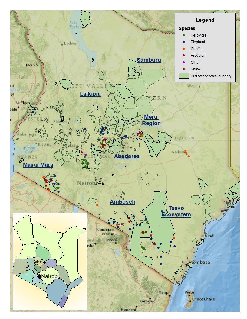 SWT/KWS Mara Mobile Vet Unit Treatment Locations