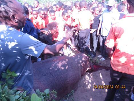 An elephant carcass was discovered and the team removed its tusks to handover to KWS for safekeeping