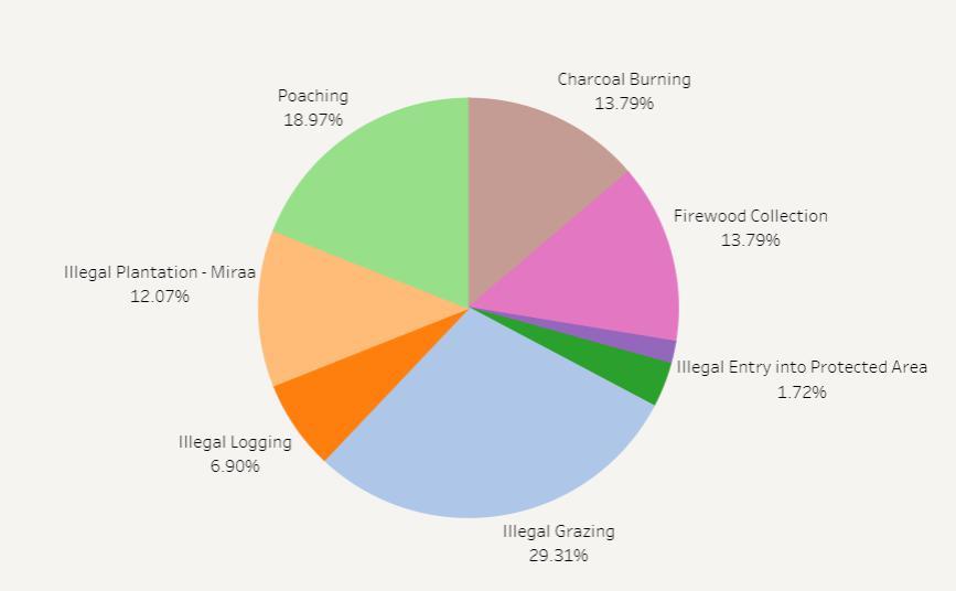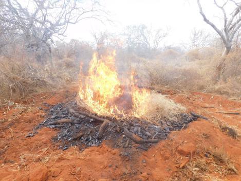 During the month, the teams destroyed 2 livestock bomas, 29 charcoal kilns and 5 charcoal camps, and 26poachers hides/camps. 4 elephant carcasses were also discovered and 89kg of ivory was con scated and handed over to KWS for safekeeping.