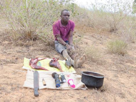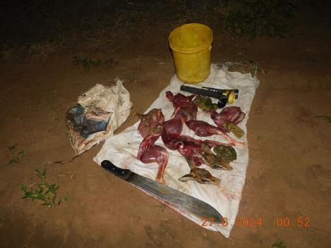 The team arrested a man caught with a consignment of bushmeat and lamping tools