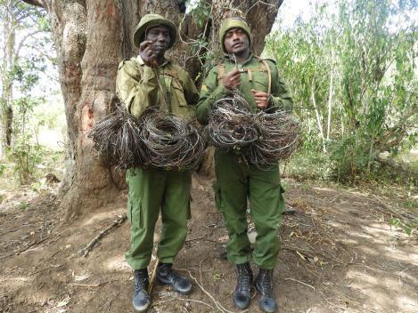 The team found more snares in the greater Chyulu Hills area and removed them before they could trap any wild animals