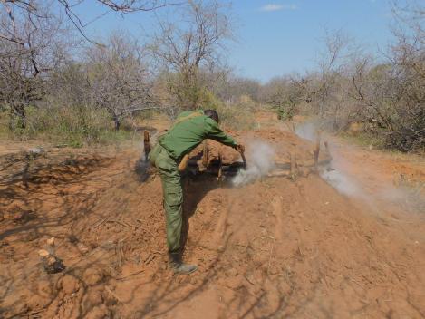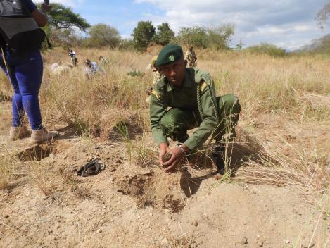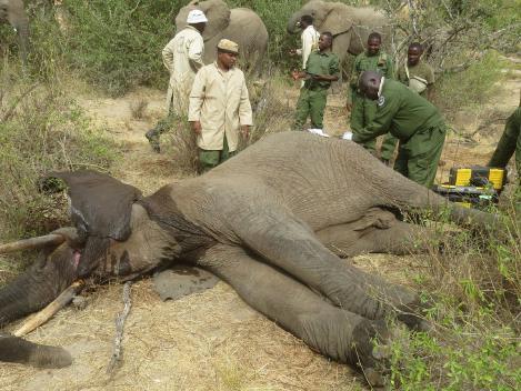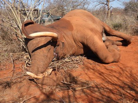 The team removed the tusks from a fresh elephant carcass found by the teams