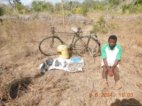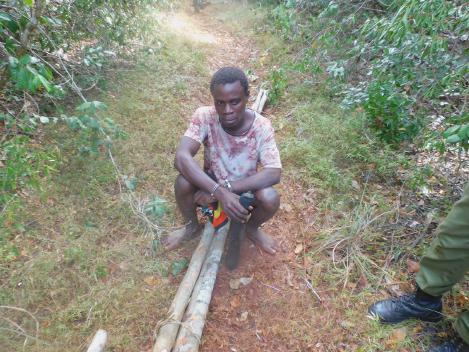The team arrested a bushmeat poacher operating in the conservation area with fresh bushmeat and poaching tools