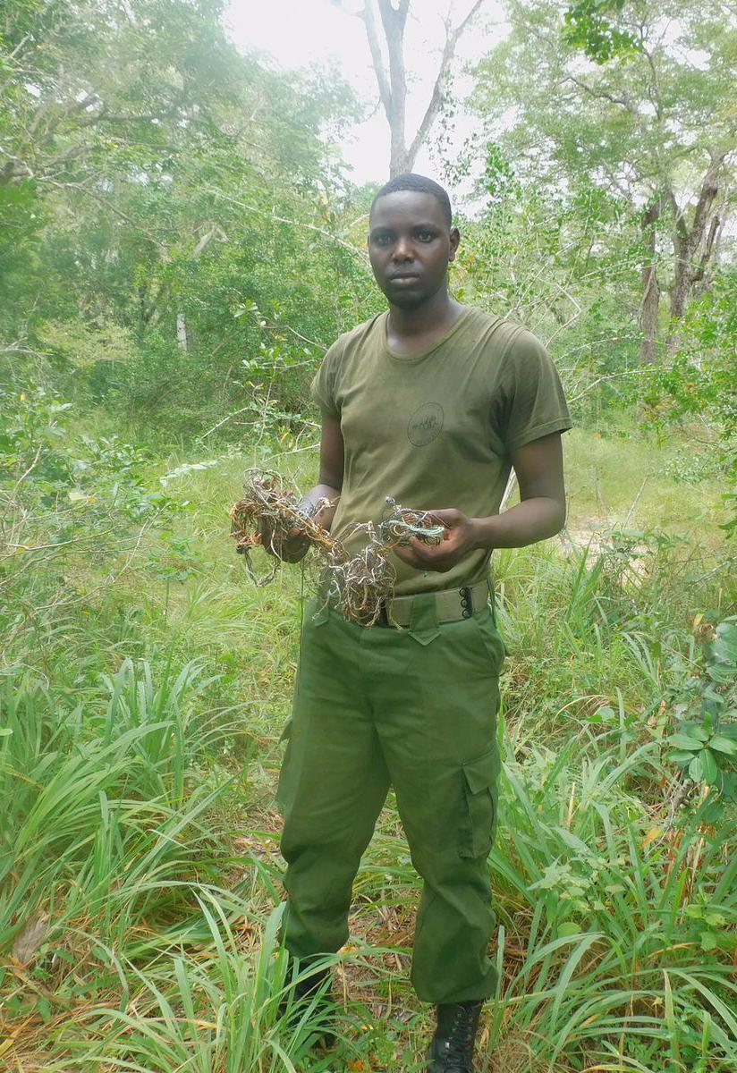 The Kenze team lifted snares from the park set by bushmeat poachers
