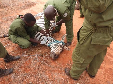 The team helped the KWS/SWT Vet Unit treat an injured zebra