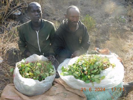 The team arrested 2 men caught with a large consignment of bushmeat and lamping tools