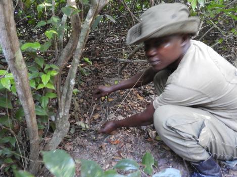 The team found and removed several small wire snares set by bushmeat poachers from the conservation area