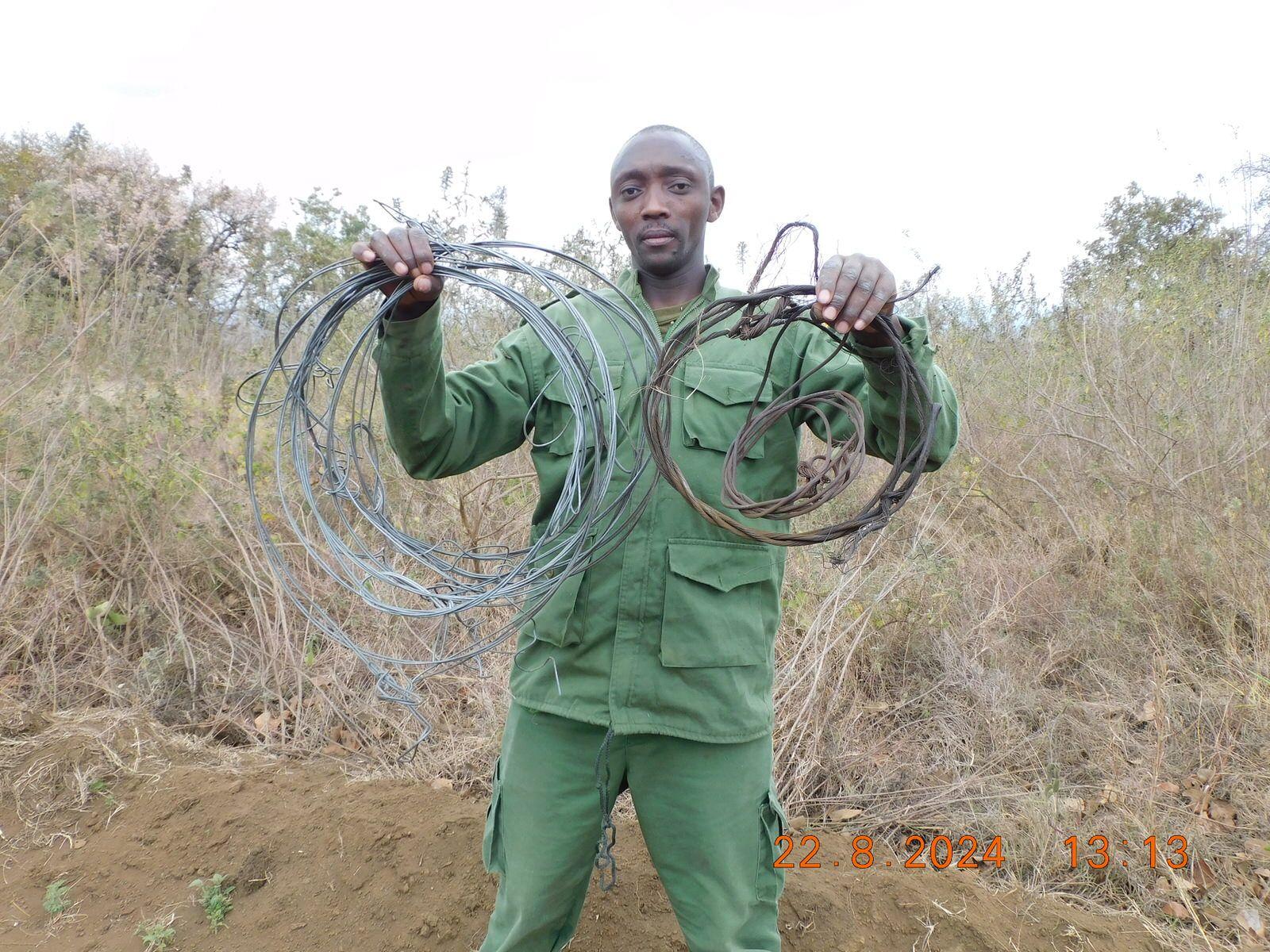 Small snares were lifted from the park. These are set by bushmeat poachers to catch small animals like dikdik